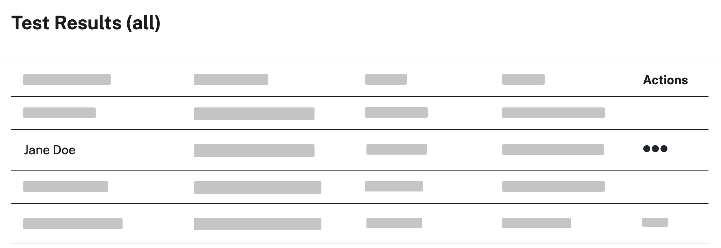 - A table of results from your testing facility will appear showing all results from the past 48 hours. To show older results, you can always click the blue See all results button at the bottom of the page.